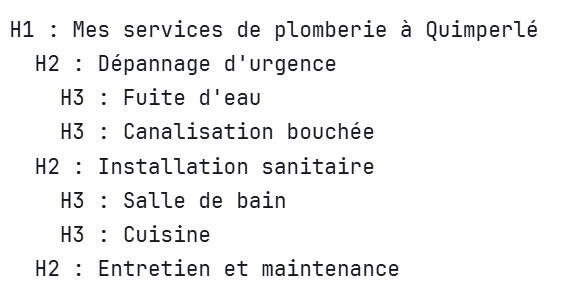Google comprend immédiatement : « OK, ce plombier propose 3 types de services principaux, et dans chaque service, il y a des sous-catégories précises. »